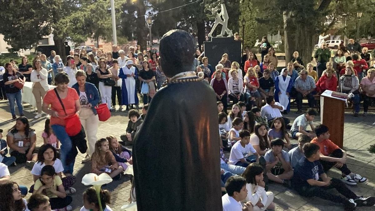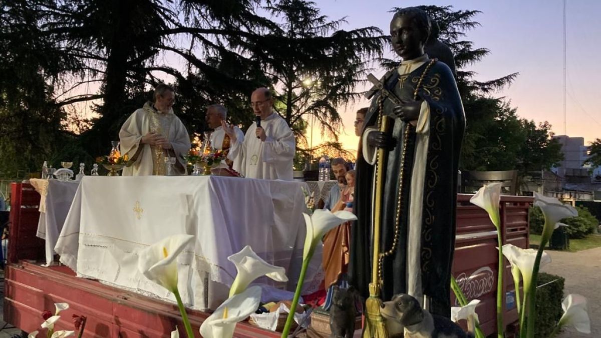 Esta tarde, a las 19 horas, se realizó la procesión y misa en honor a San Martín de Porres. Los feligreses caminaron desde el Templo hasta la plaza Eva Perón, donde tuvo lugar el oficio religioso presidido por el padre Daniel Camagna, un sacerdote bragadense que actualmente se desempeña en Nueve de Julio.