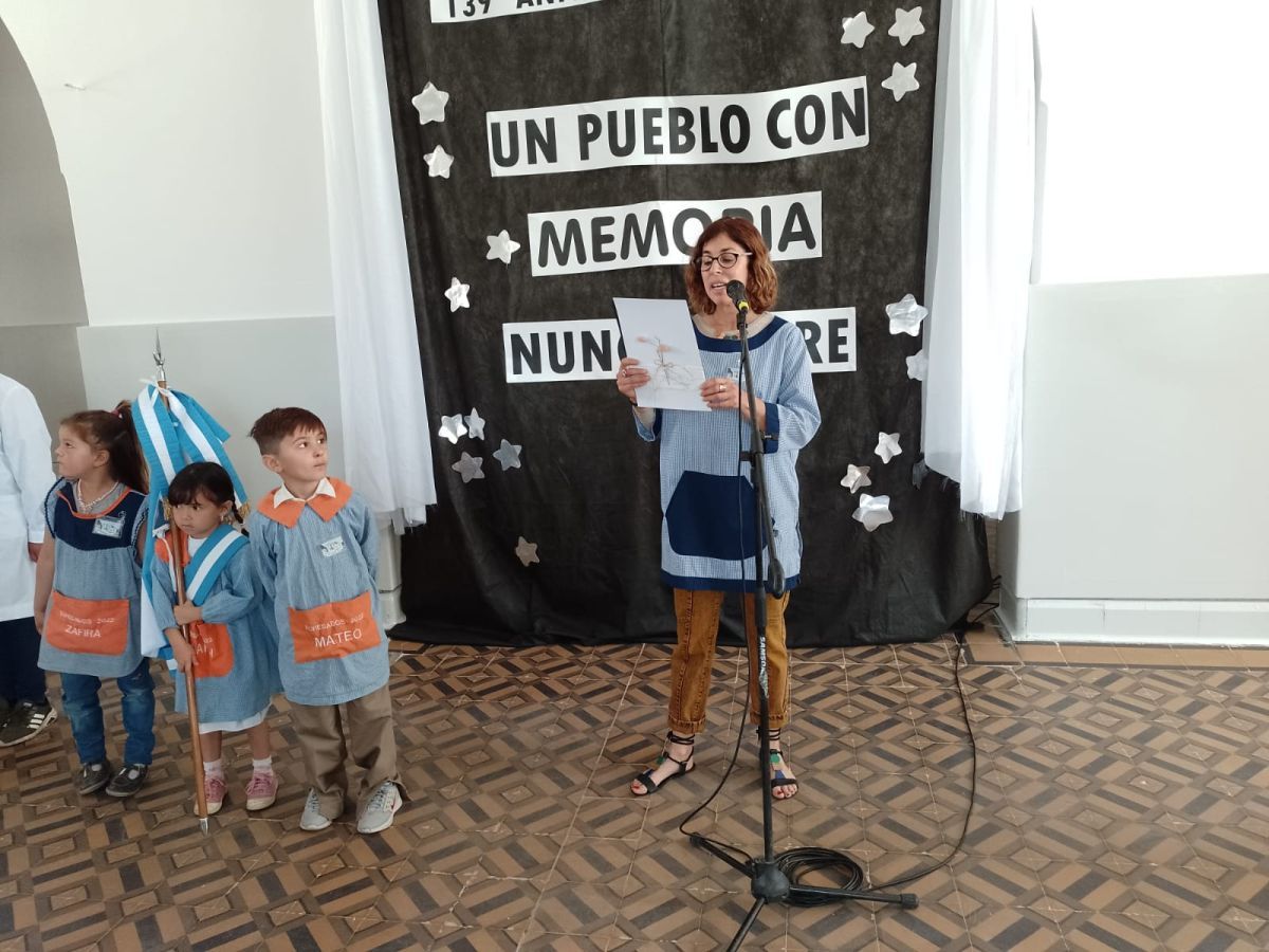 Luego de entonarse las estrofas del Himno Nacional Argentino, se dio lectura a una carta enviada desde la provincia de Córdoba por la profesora Mercedes Puricelli de Tayeldín, ex concejal y ex diputada provincial, agradeciendo la invitación cursada por la delegada Municipal, María Marcela Pascual.