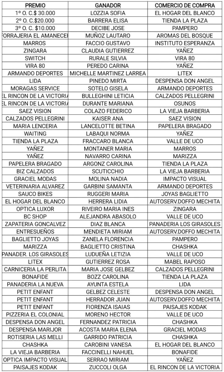 Participaron alrededor de 60 comercios. Los 3 primeros premios son órdenes de Compra a retirar en locales socios de la Cámara a elección del ganador.