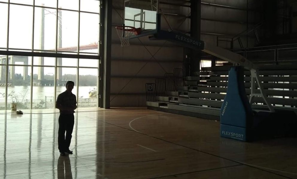 La apertura de un mega estadio municipal a la vera del Río Paraná fue motivo de una nueva visita al complejo deportivo por parte de Mariano; el puente Zarate Brazo Largo de fondo, integrado desde la vista del lateral vidriado; pileta climatizada, gimnasio de musculación, oficinas y sala de reuniones en planta baja, en planta alta se encuentra el espacio principal con capacidad para 2.500 espectadores sentados, piso flotante, jirafas y aros profesionales, escenario colgante, palcos para prensa, vestuarios y diferentes sectores para baños.