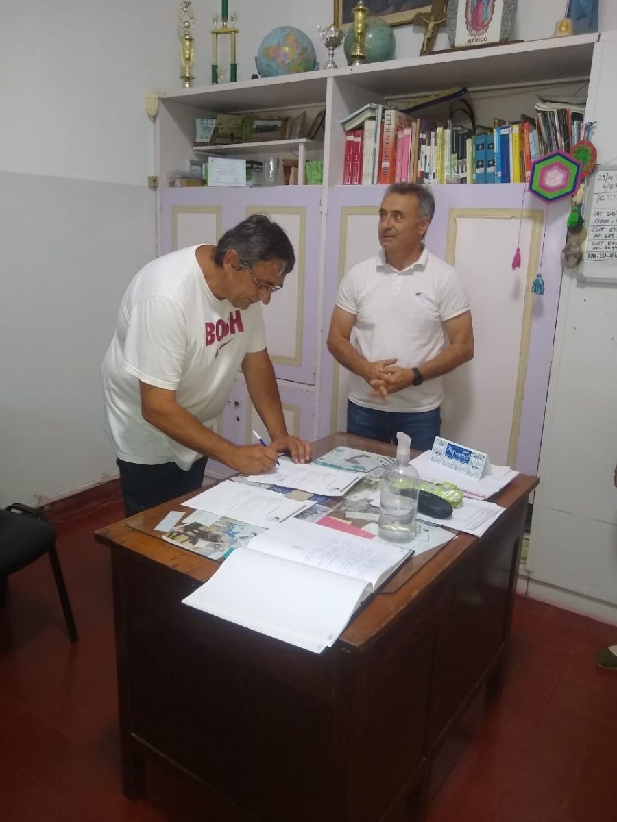 En la jornada de este 6 de diciembre, el presidente de la Cooperadora de la Escuela Especial N°501, Diego Tayeldin; el director del establecimiento, Hugo Flores; Pablo Solís, de Solis Construcciones; el consejero escolar Pablo Bagatín; y el Arquitecto Claudio Legnani, firmaron el contrato para la iniciación de la obra del SUM (salón de usos múltiples) de la institución.