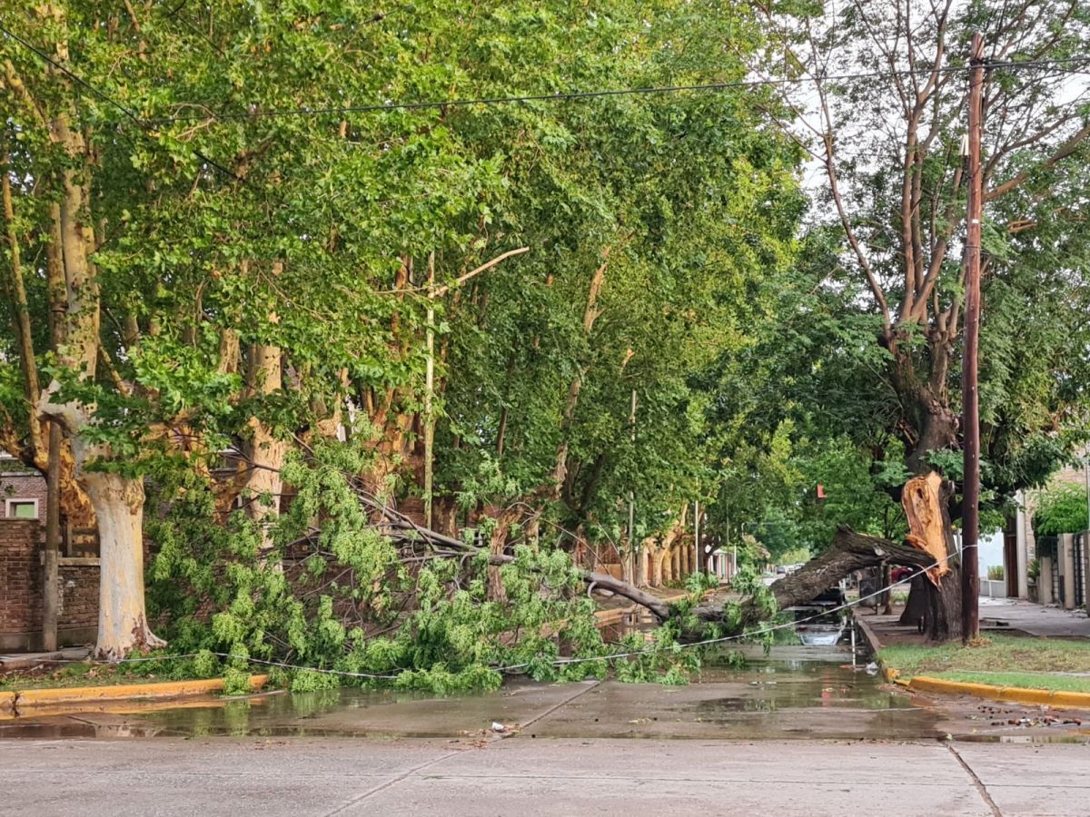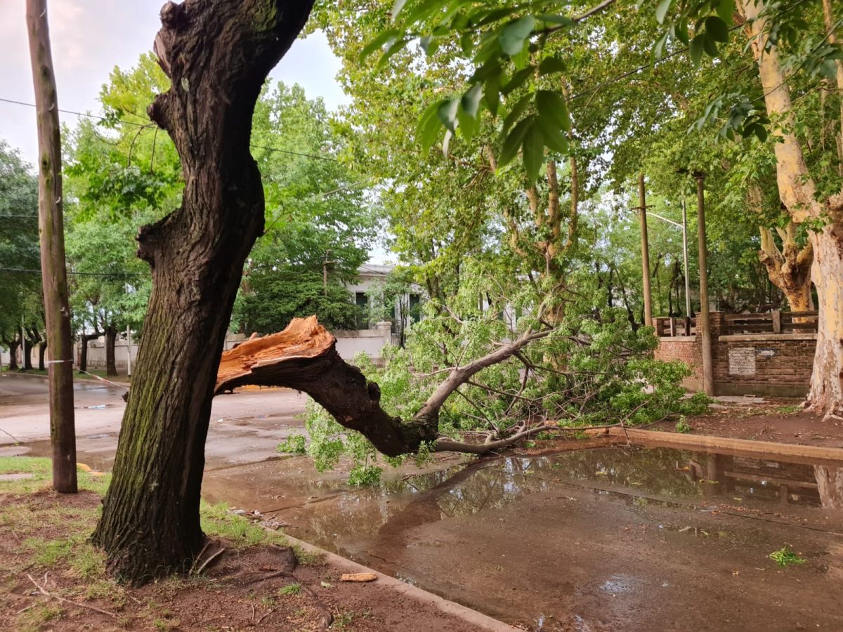 El viento se hizo presente sin piedad, con ráfagas que alcanzaron los 135 Km/h en algunos sectores. También ocasionó varios desprendimientos de techos, entre ellos, en la calle Quiroga al 900 y las casas que se están terminando en el barrio El Complejo.