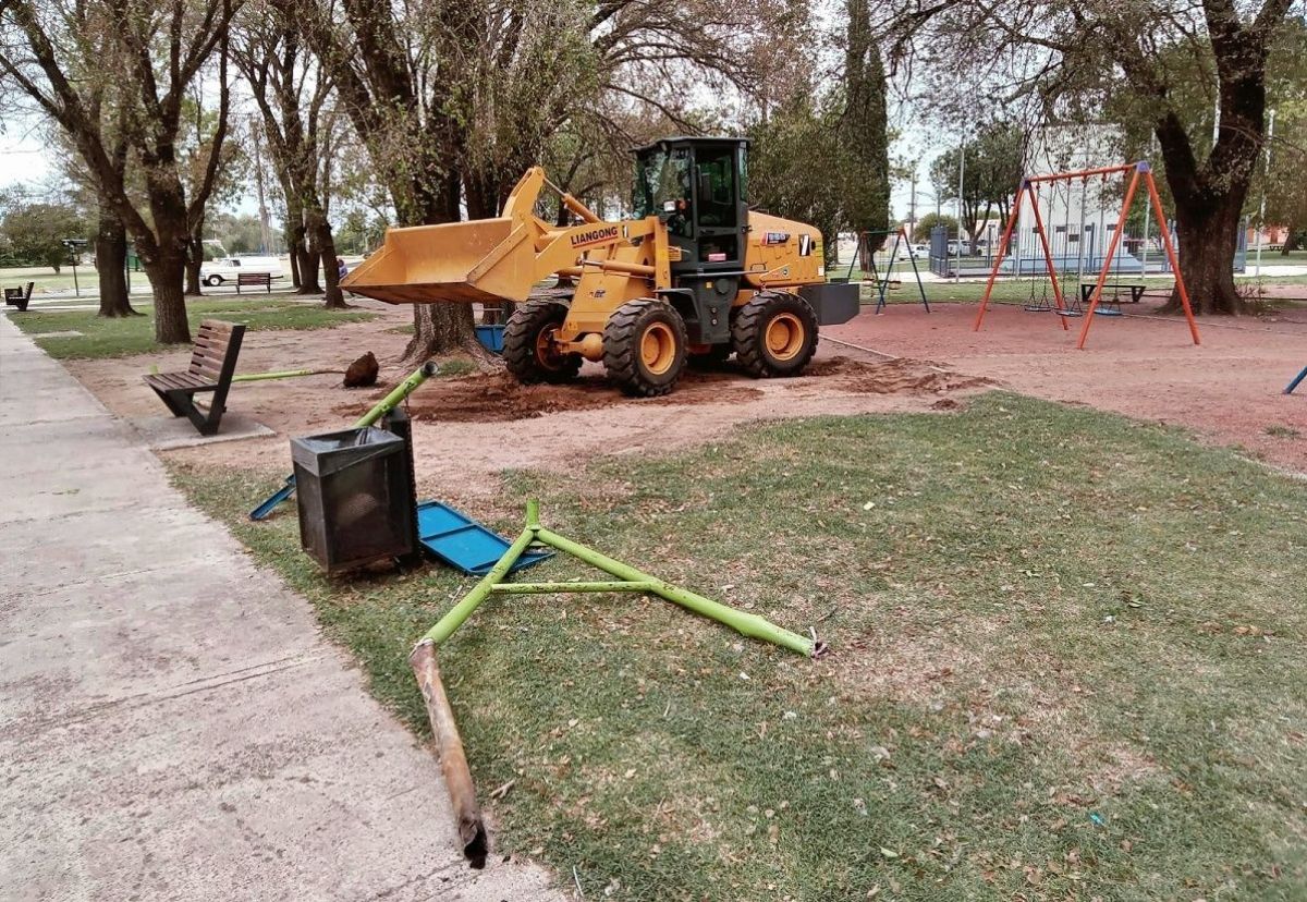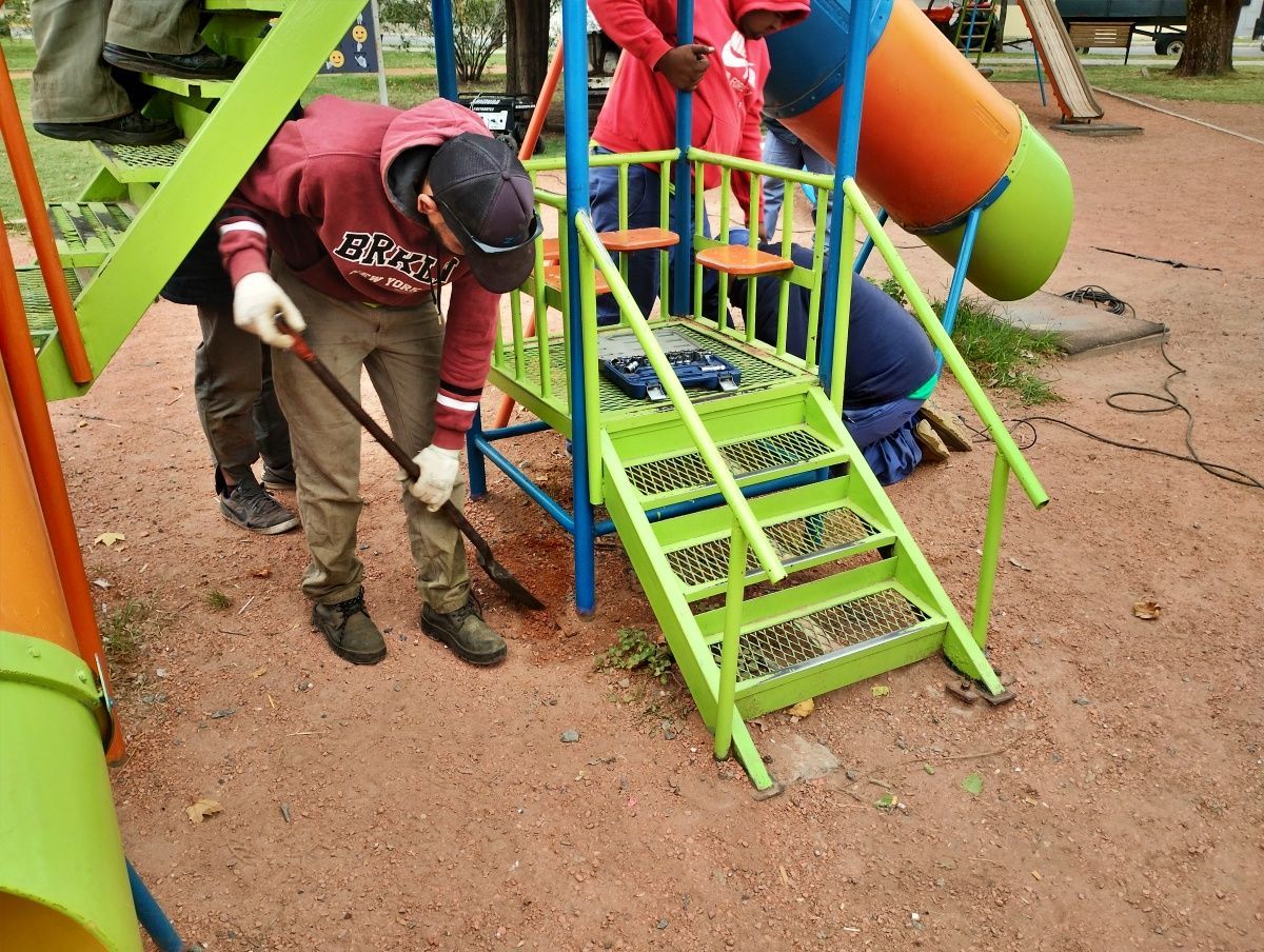 Esta mañana se dio inicio a la tarea por un mangrullo y los juegos para personas con discapacidad. En el transcurso de la semana próxima, continuarán trabajando para colocar la platea del juego nuevo.