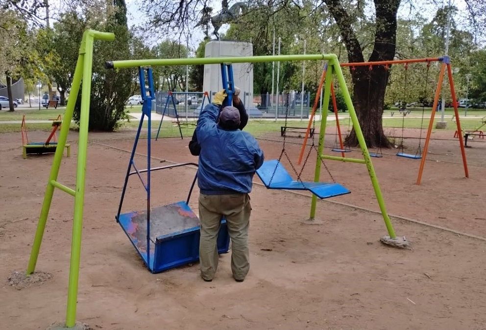 Comenzó el recambio de los juegos antiguos en la Plaza San Martín