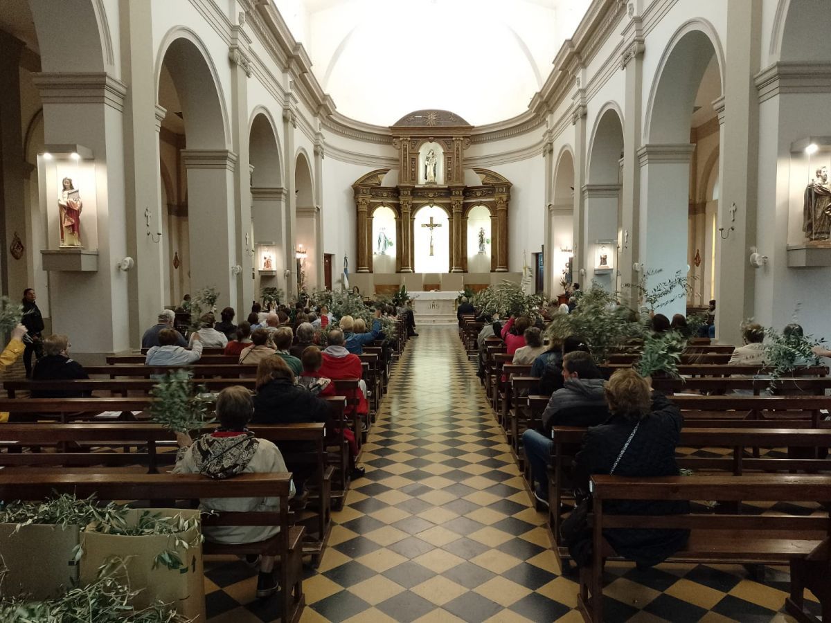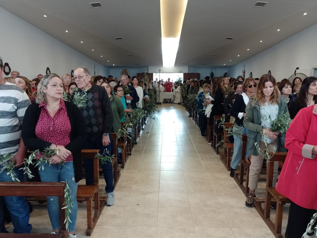 La lluvia no impidió la fiesta de los católicos, aunque se tuvo que cambiar el lugar para la bendición de los ramos de olivo.