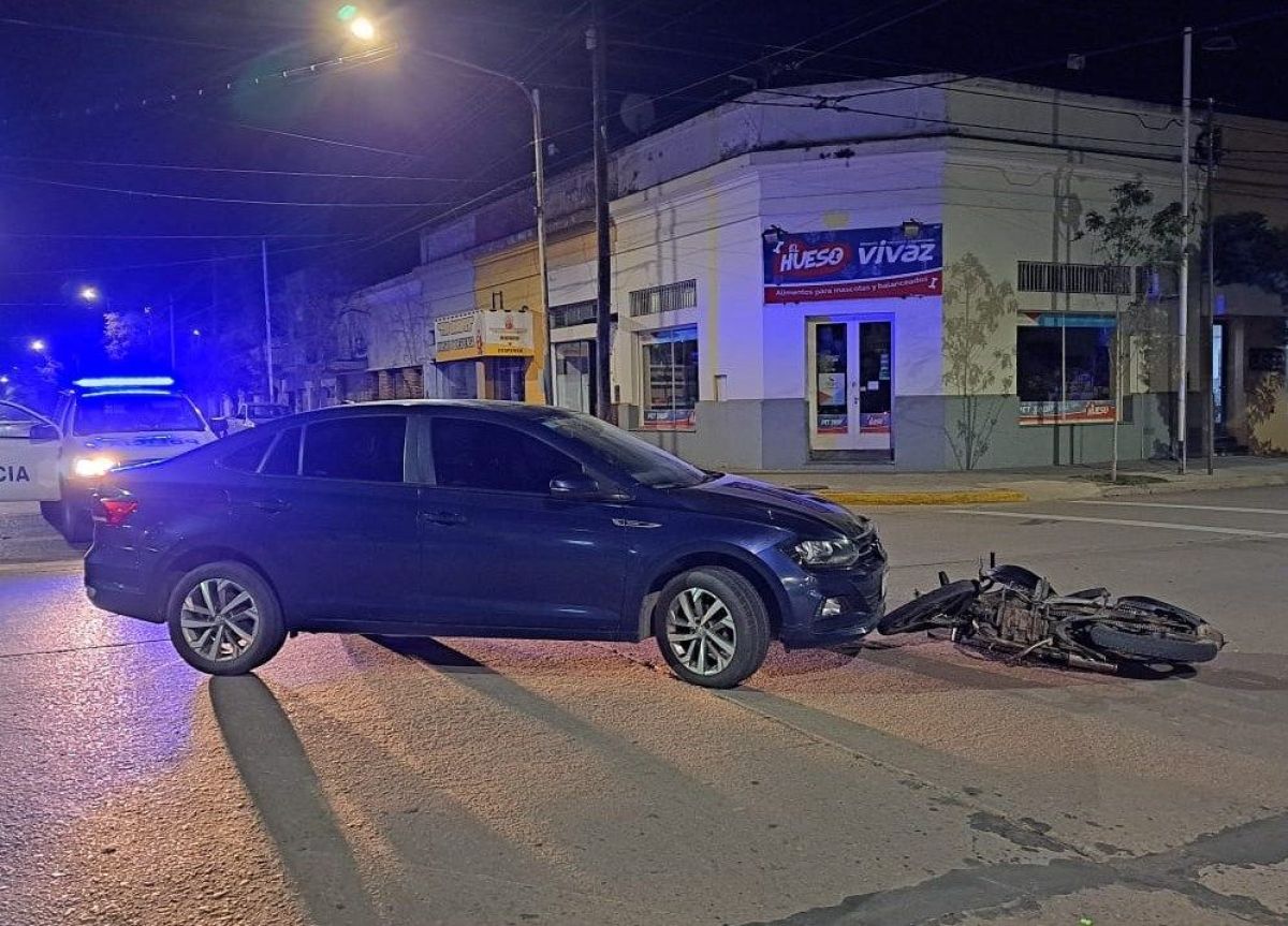 En horas de la madrugada, ocurrió una colisión entre un auto y una moto en la esquina de Rivadavia y Pringles.