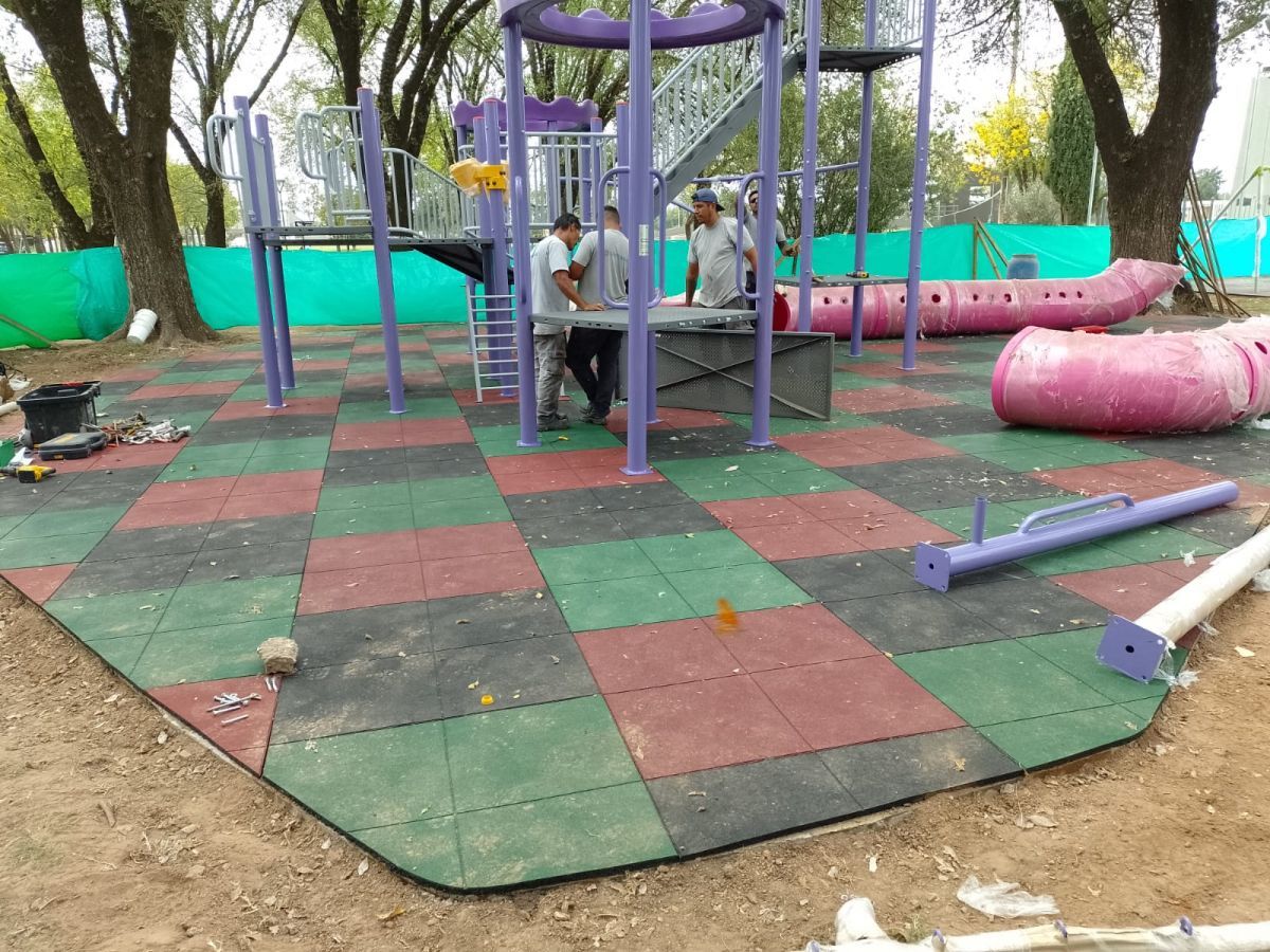 Comentó que juntamente a la instalación del juego se colocó un piso blando de seguridad de caucho, realizado con material reciclado con cubiertas en desuso.