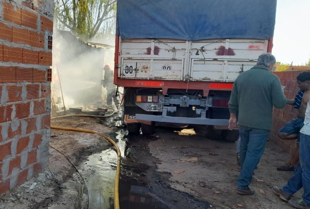 Esta tarde, alrededor de las 14:15, se produjo el incendio de un camión, destruyendo por completo su motor y cabina. Como consecuencia del hecho, también resultó afectado un galpón y una vivienda contigua.