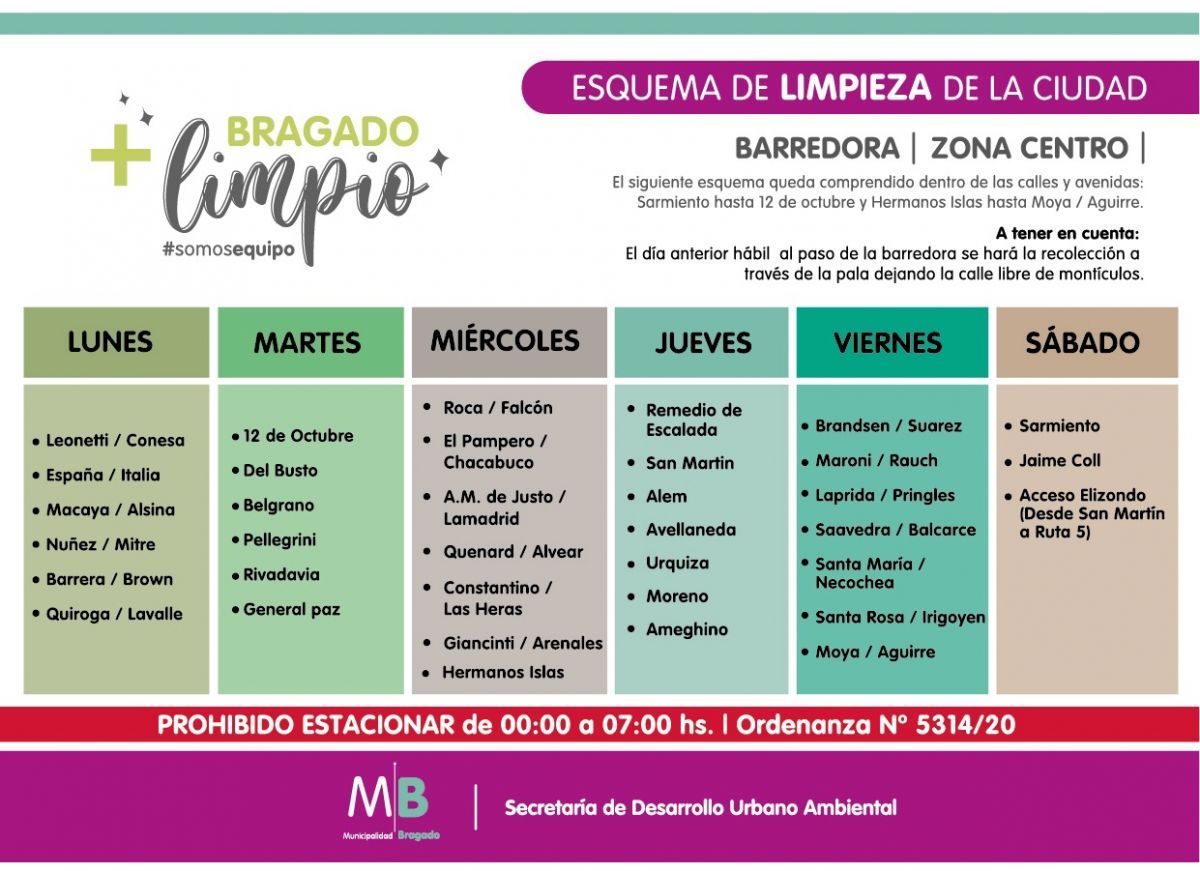Por Ordenanza tenemos establecido, que día y en qué horario pasa la barredora por el lugar y necesitamos que ese día por la noche, los vecinos no dejen los autos estacionando en la calle.