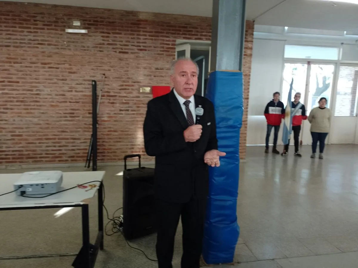 En la mañana de este miércoles, en el SUM de la Escuela Industrial, se llevó a cabo un acto que tuvo el objetivo de homenajear en vida a Mario Giurca, un hombre ligado a Bragado que combatió en Malvinas y fue alumno de esa institución, por lo que se descubrió una placa alusiva.