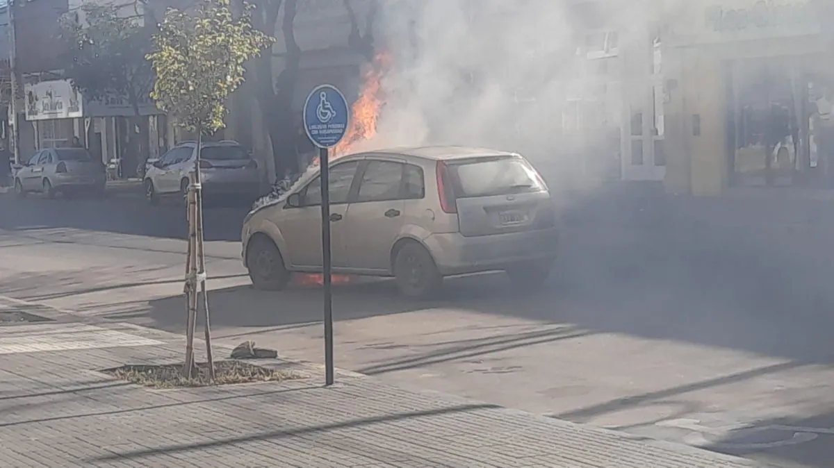 Instantes atrás, alrededor de las 13:00, un auto se incendió mientras transitaba en la zona céntrica.