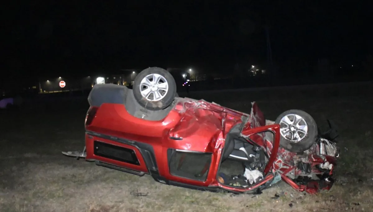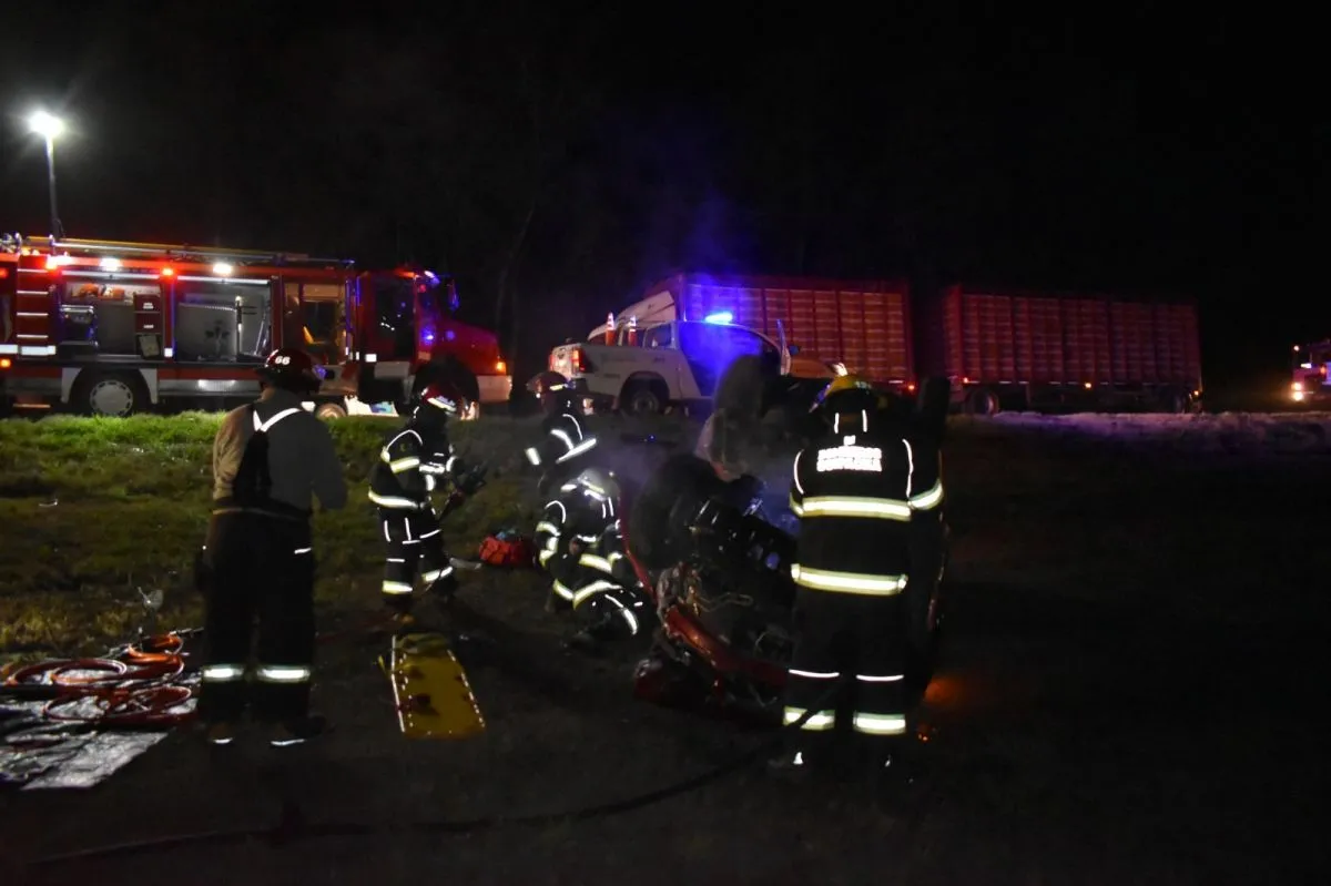 Producto del fuerte impacto, la PickUp quedó desplazada, volcando y dejando a sus tripulantes atrapados, quienes fueron rescatados por el cuerpo de Bomberos Voluntarios allí presente.