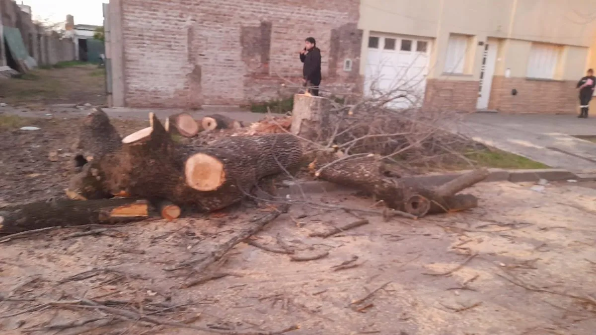 Un vecino de dicha cuadra estaba podando el árbol cuando se desprendió una parte importante, cayendo también sobre una una mensula de Eden, lo que afectó la energía electrica de toda la cuadra.