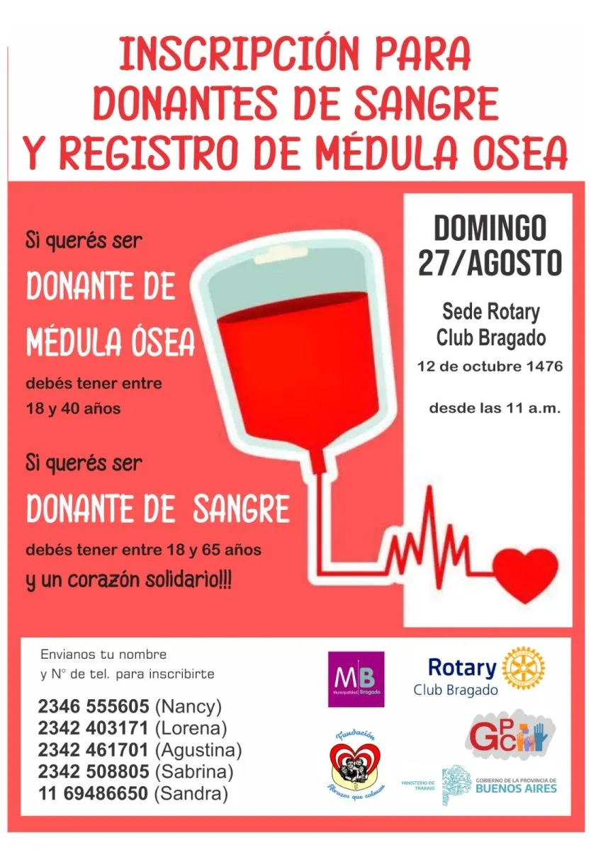 El 27 de agosto será la cuarta jornada de donación de sangre y registro de médula ósea