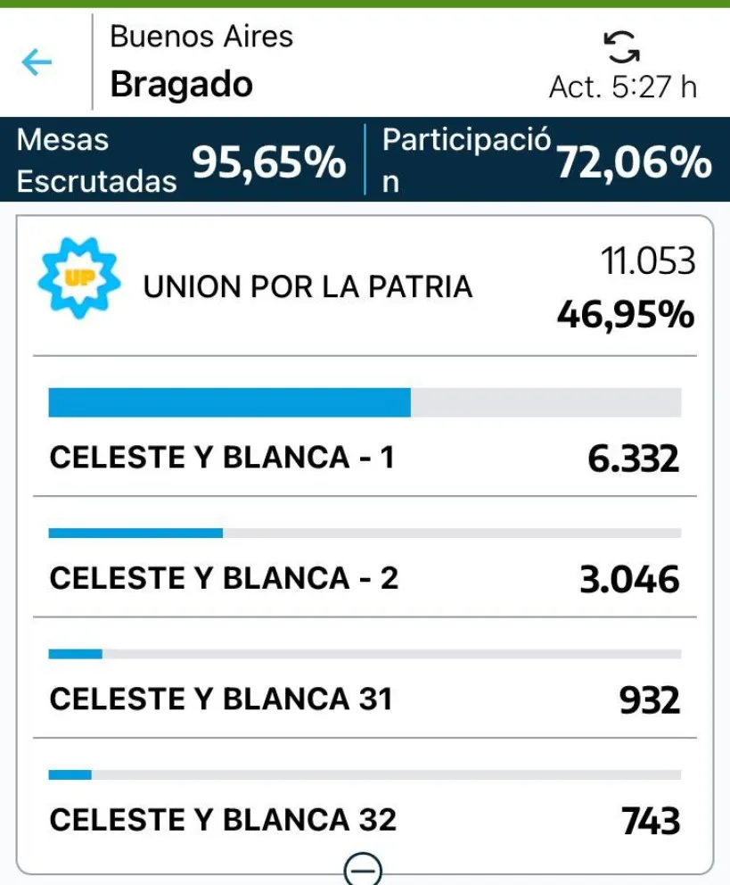 En lo que a la interna de Unión por la Patria la lista de Sergio Barenghi obtuve 6.332 votos.