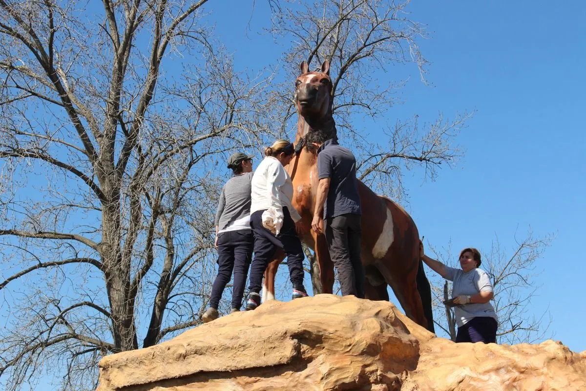 Durante la jornada del día de ayer, dieron comienzo a la primera etapa de la restauración del monumento al caballo, ubicado en la intersección de la Ruta 46 y el Acceso Presidente Perón.