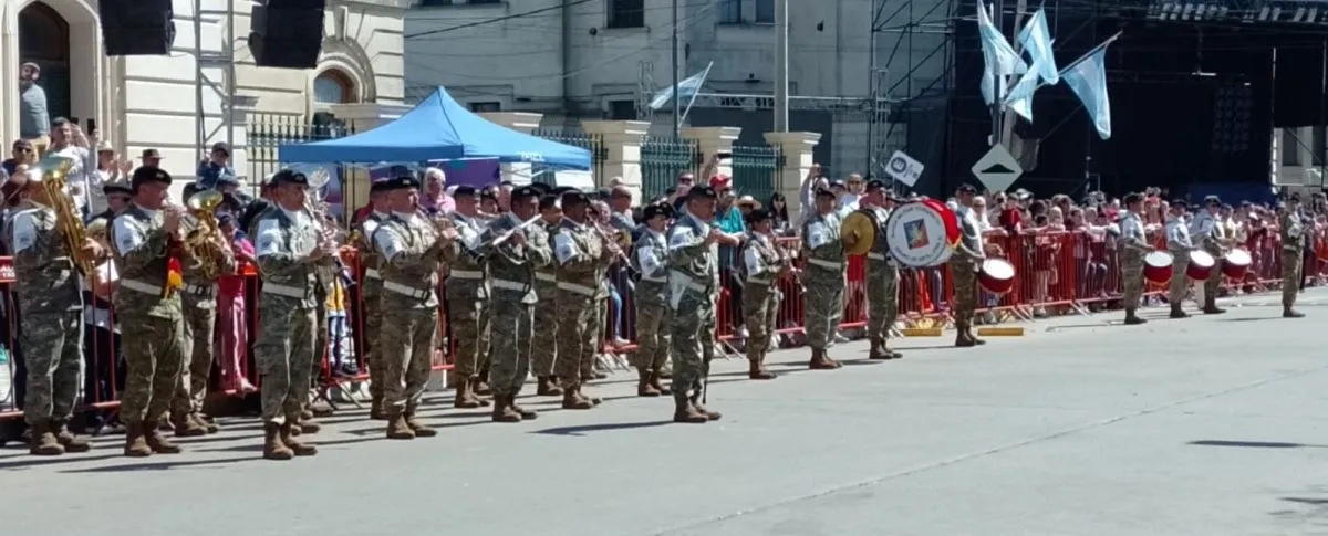 Los Granaderos entonaron las estrofas de la marcha de San Lorenzo, acompañados por toda la gente y al ritimo que le puso la Banda Militar Curupaytí del Regimiento de la ciudad de Junín.