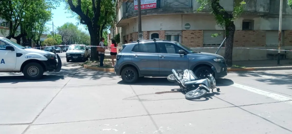Choque en pleno centro: colisionaron un auto y una moto en Belgrano y Mitre