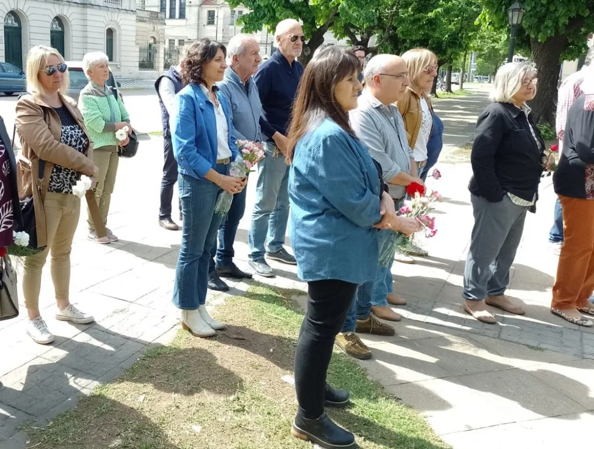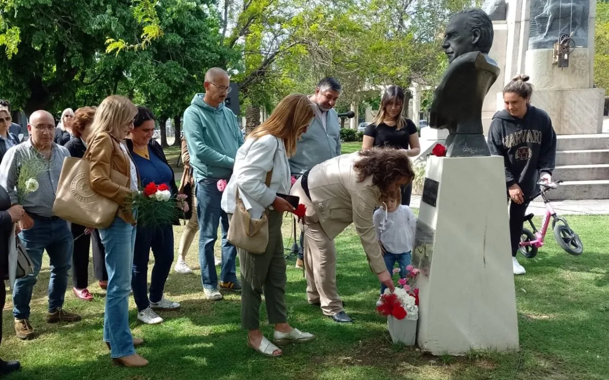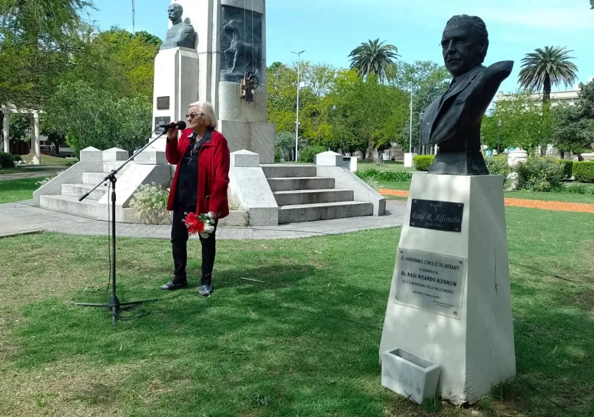 Luego, cada uno de los presentes depositó una flor al pie del busto de Alfonsín.