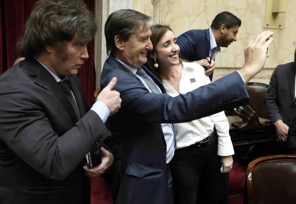 Entre los presentes, estuvo el diputado nacional obriense Pablo Torello, quien aprovechó el momento para fotografiarse con Milei y Villarruel.