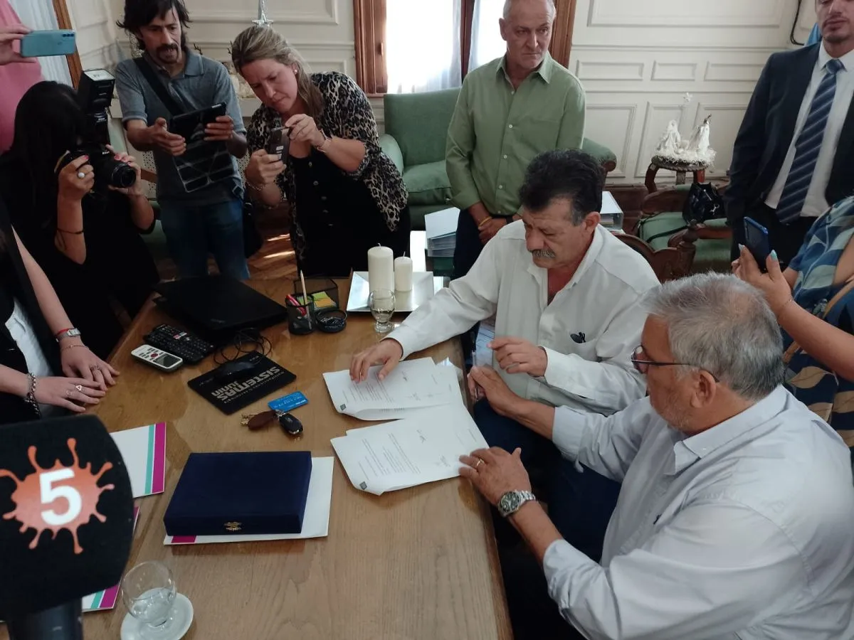Hoy, el -hasta este momento- Jefe Comunal, procedió a realizar la misma entrega al intendente electo Sergio Barenghi. Además, firmaron el acta de transmisión de gobierno.