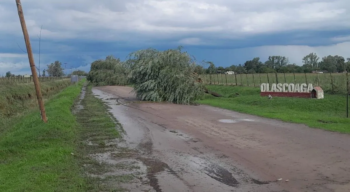 En la tarde de este martes, la localidad de Olascoaga, sufrió el paso de una tormenta severa, a la que algunos califican como un tornado (resta confirmar). El viento superó los 150 km/h, provocando la caída de árboles, voladura de techos de algunas viviendas, roturas de autos; e incluso muy cerca del pueblo se derrumbó un galpón en cuyo interior quedaron atrapadas personas mayores de edad y menores, aunque afortunadamente no sufrieron lesiones de consideración, según comentó el segundo jefe de Bomberos Voluntarios de Bragado, Horacio Castromán.