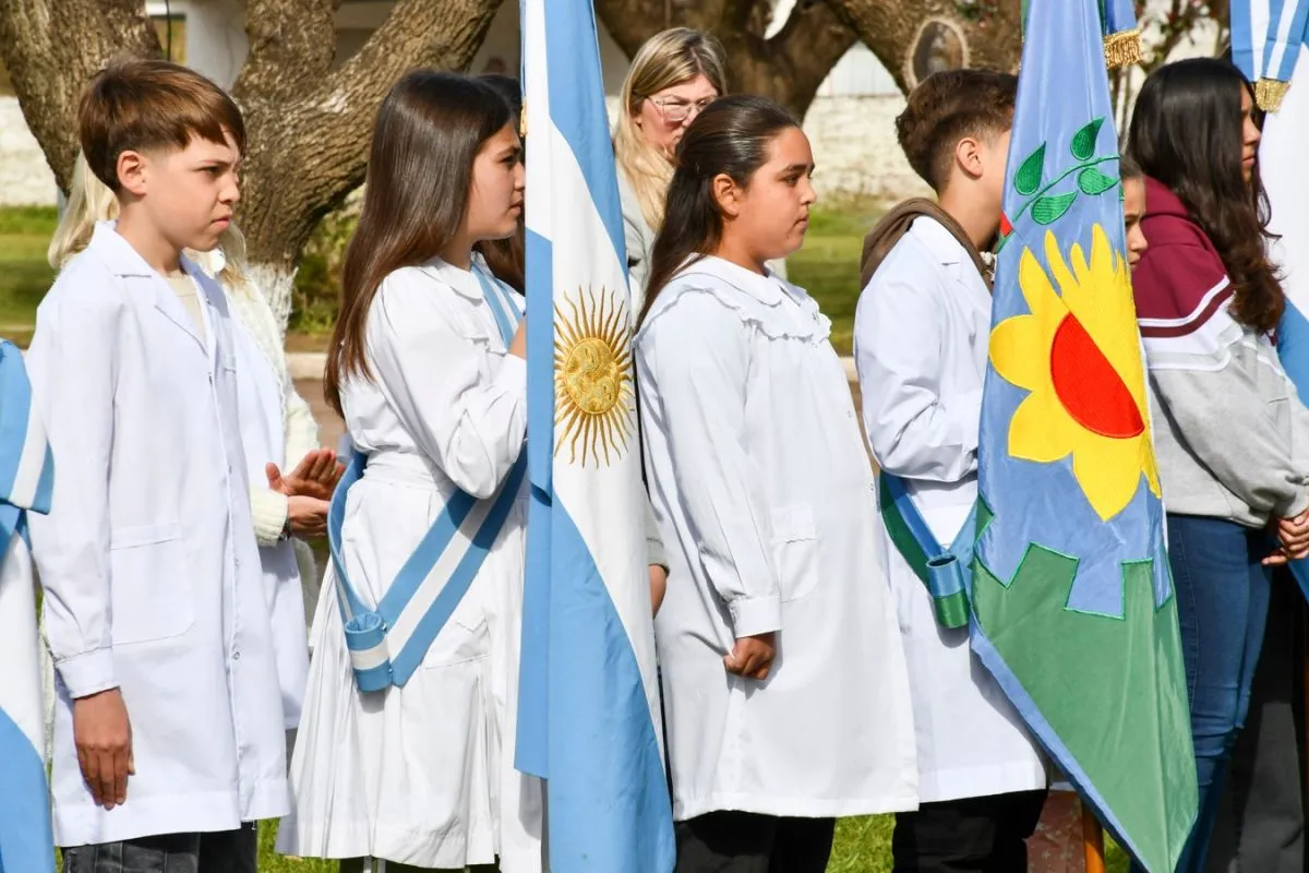 Autoridades municipales, instituciones, vecinos y la comunidad educativa participaron de la ceremonia que incluyó el ingreso de banderas, el Himno Nacional y una ofrenda floral en homenaje a los inmigrantes.