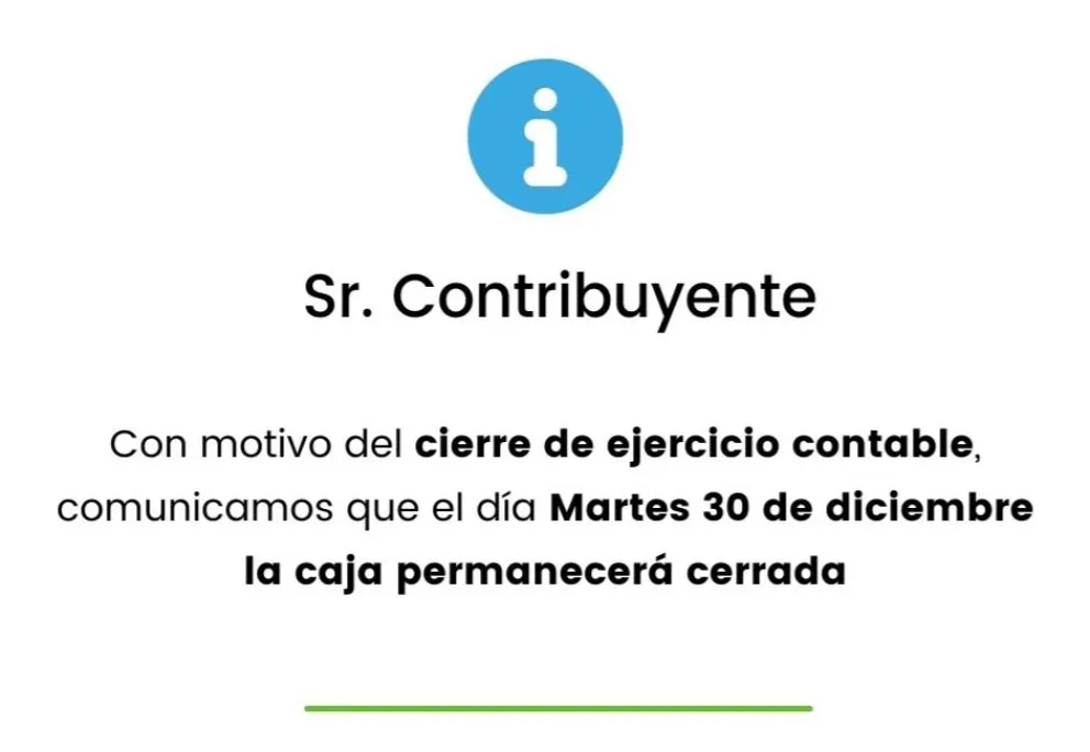 La Municipalidad informa que, con motivo del cierre del ejercicio contable, el día martes 30 de diciembre la Caja Municipal permanecerá cerrada, no realizándose atención al público ni cobros presenciales.